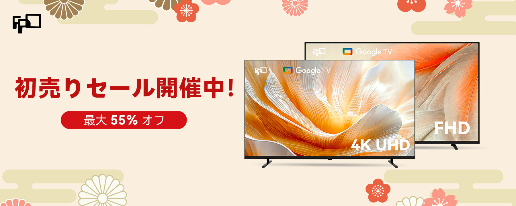 FPD チューナーレステレビ 55V型 4K Google TV ネット動画対応 スマートテレビ HDR10対応 Dolby Vision Dolby Atmos MEMCテクノロジー Google Cast内蔵 音声検索対応 VESA規格