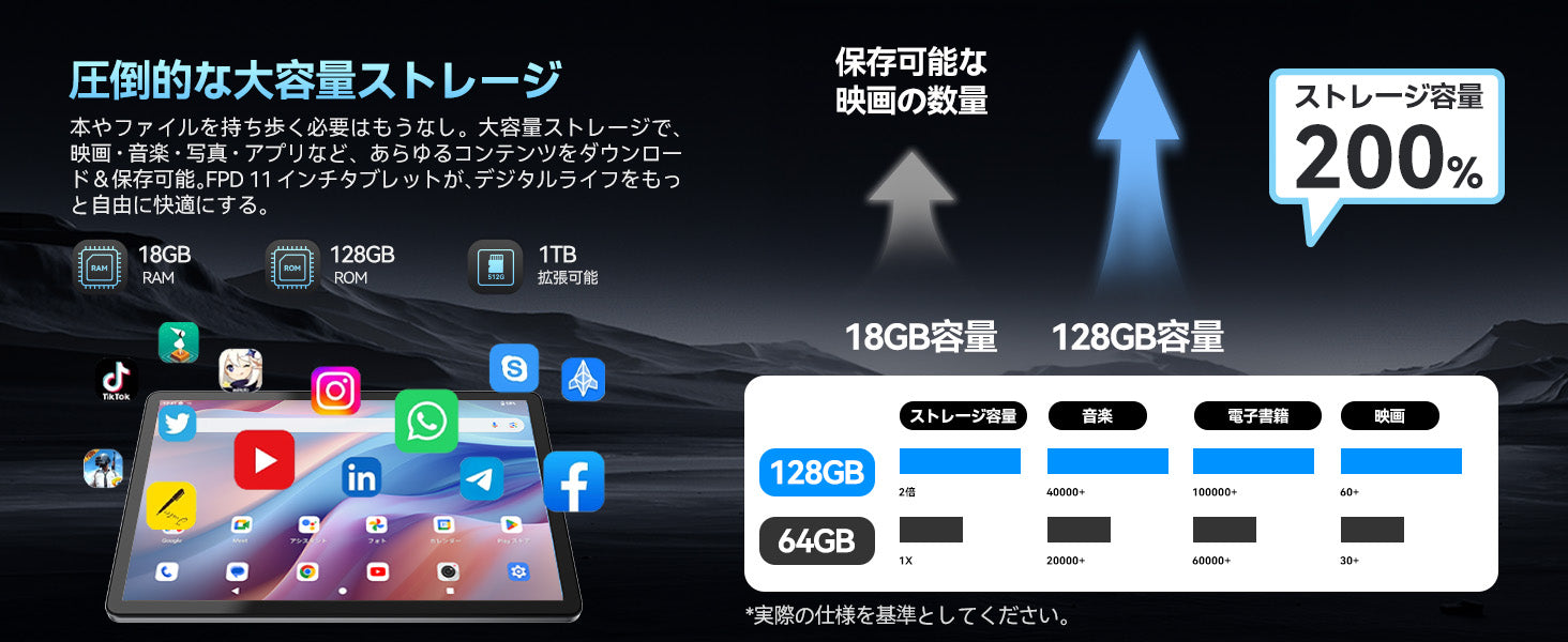- 【18GB RAM大容量メモリ搭載+8000mAh 大容量バッテリー】FPDタブレットは6GB RAMと12GBの仮想RAMをサポート。18GBの大容量RAMを搭載しており、アプリの高速起動とマルチタスクウィンドウのスムーズな処理を実現します。さらに、128GB の大容量ストレージにより、好きな映画やアプリを思い切り保存できます。1TB のメモリーカードを追加して、ストレージ容量を拡張することもできます。8000mAh 大容量バッテリーを搭載し、ビジネス出張や旅行でも長時間快適に使用可能です。充電の心配を一切せず、安心して外出先で作業やエンターテインメントをお楽しみいただけます。Type-Cポート搭載で、PD 18W急速充電をサポート。