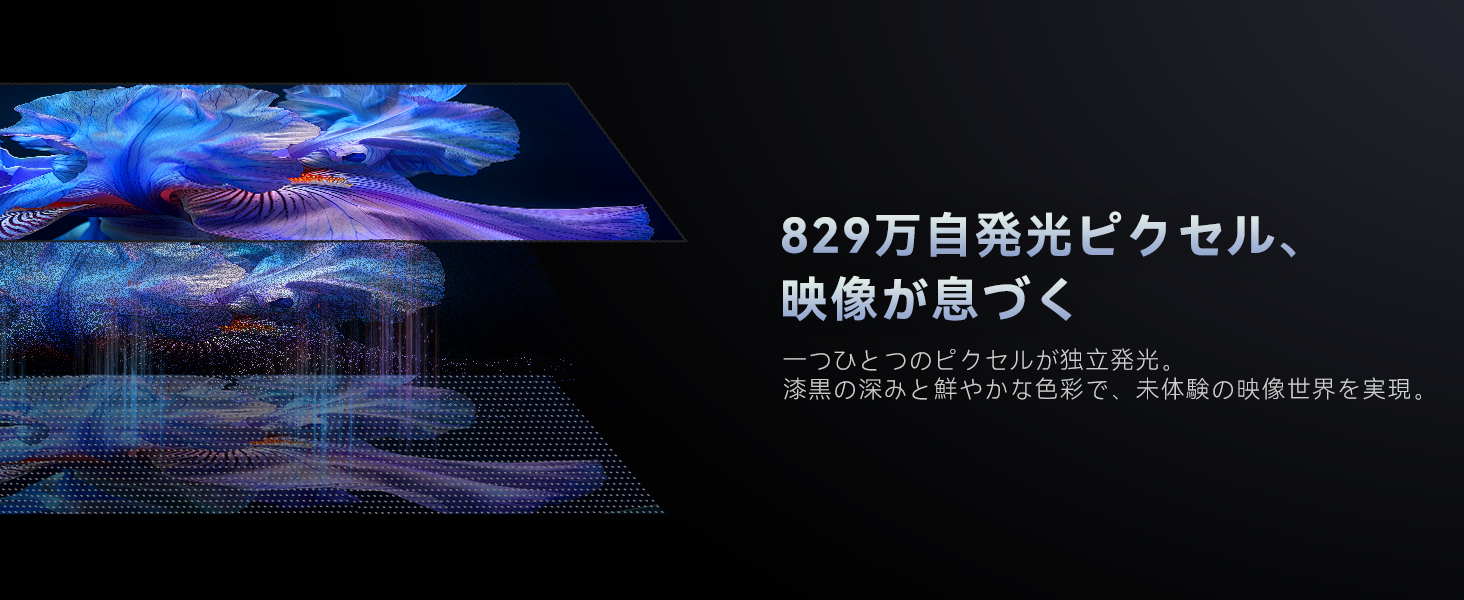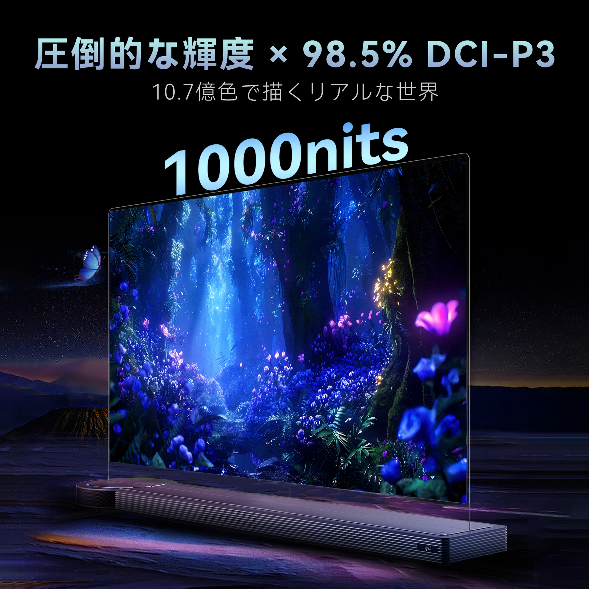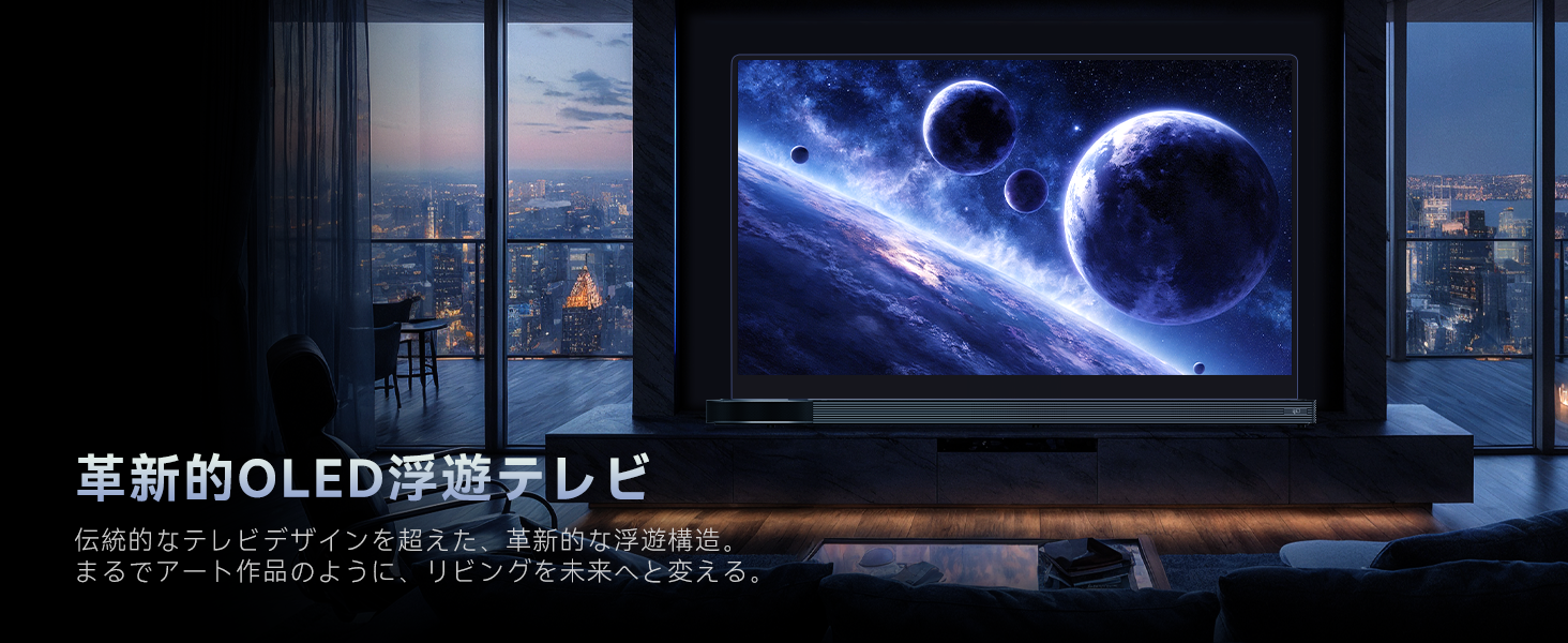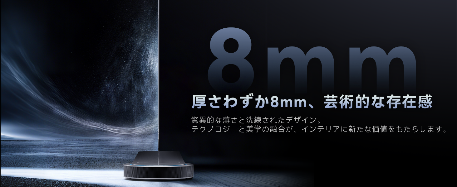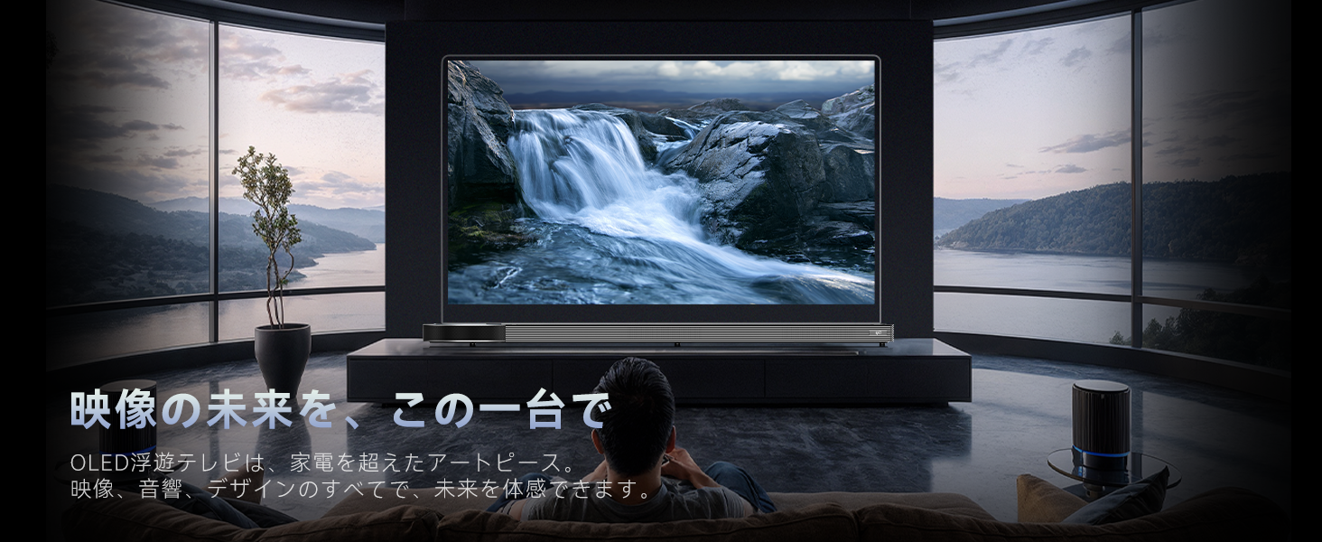 - 【革新的デザイン】 厚さわずか8mmの超薄型OLED浮遊テレビ。まるでインテリアアートのように空間を演出し、リビングをスタイリッシュに彩ります。