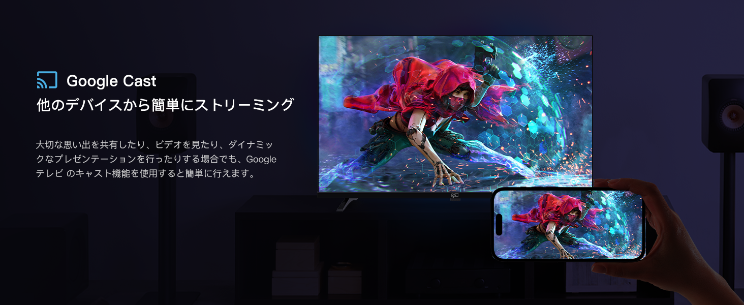 製品の特徴 | ゲームモード, ベゼルレスデザイン, アイコンフォートモード, マルチボイスアシスタント, Google Cast |