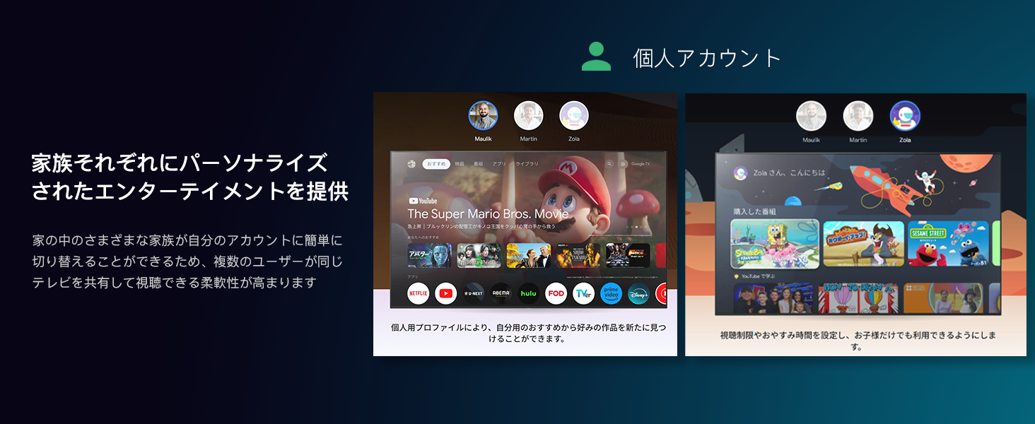 インターネットサービス | Netflix, Google TV, Apple TV, YouTube |